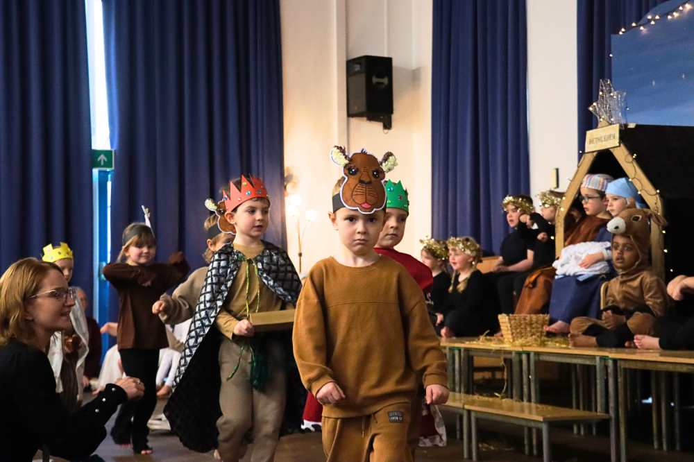 Those characters who journey in the Nativity story truly brought it to life by travelling around the hall as part of the performance. Mary and Joseph made their way to Bethlehem with their donkey, the angels spread the good news to the shepherds, the shepherds and sheep travelled to visit Baby Jesus, and the kings followed the stars on their camels. This movement around the space made the story engaging, immersive, and magical for everyone watching.